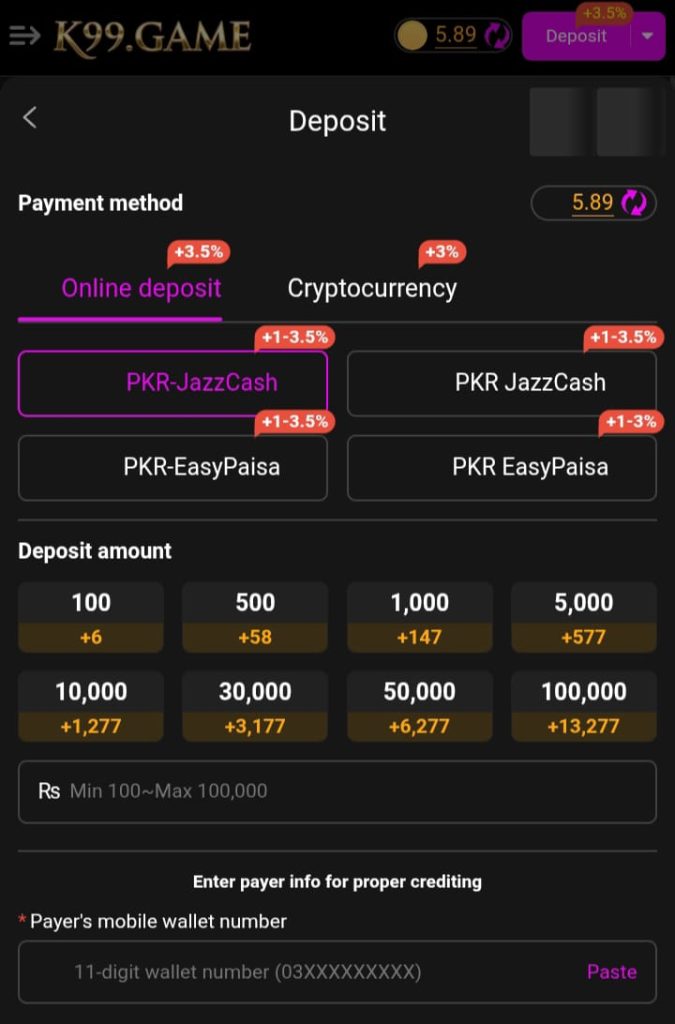The process to deposit in K99 Game is very simple. Open the app and head to your wallet or deposit section, where you click deposit money. Then you may be asked some questions related to your account, and you have to answer, write the account number, and type everything accurately. Open your other account for payment, send money to the game, and wait for it to reflect in your wallet. Following these steps carefully ensures your deposit goes smoothly.