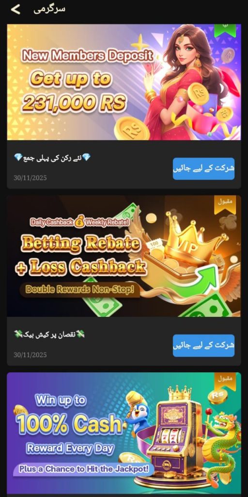 The app supports payment methods that are convenient for Pakistani users, making deposits and withdrawals easy.