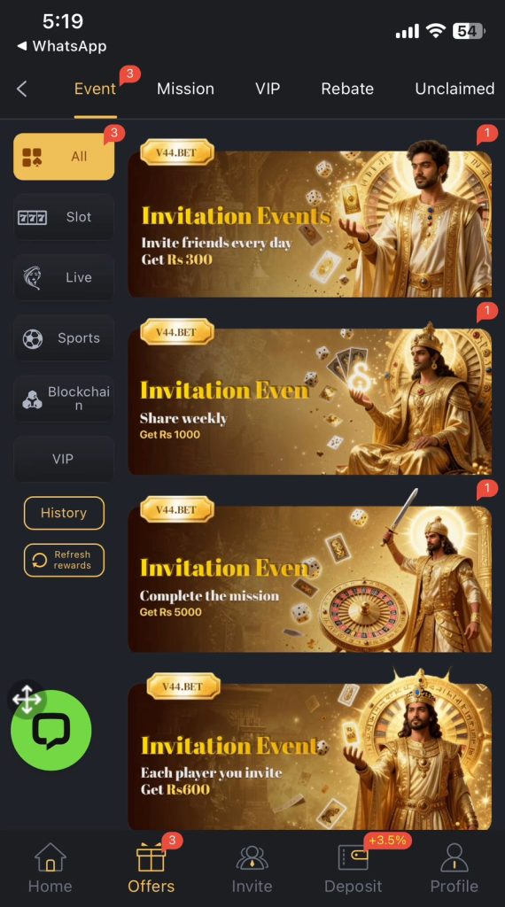 V44 Game offers a referral system where users can earn additional rewards by inviting friends. Each successful referral can result in bonus credits or commission-based rewards, motivating players to expand the app’s user base.